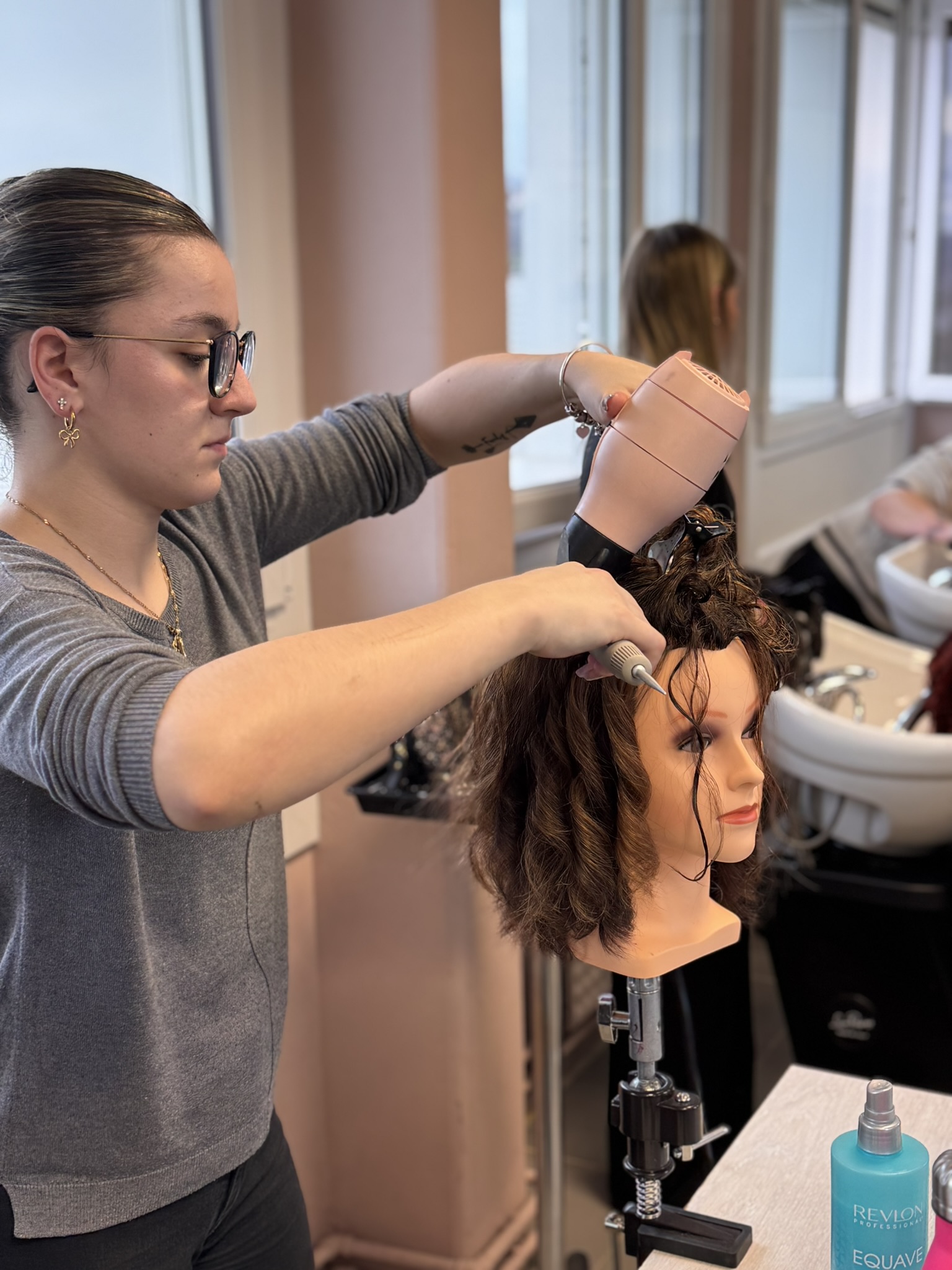 Aurélie Pinot, formatrice pour la marque Wella, est venue donner une masterclass à nos élèves de CAP Métiers de la Coiffure (1ère et 2ème année) et de CS Coiffure-Coupe-Couleur, ce vendredi 16 janvier.